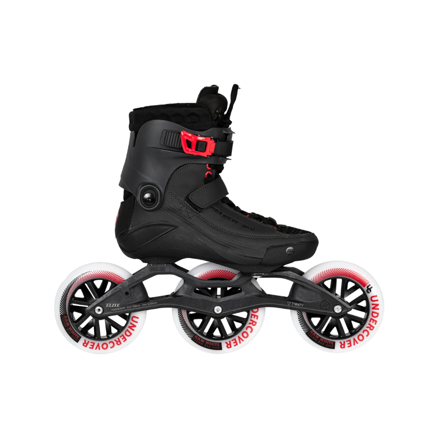 We complete the skate with our TRINITY X mount system with our marathon and race-proven Elite 12,5" frames, made out of super-light magnesium, high-performance Undercover Raw White 125 wheels with UHR urethane, and Wicked freespin ABEC 9 chrome steel bearings. Includes a height-adjustable brake system (HABS brake).