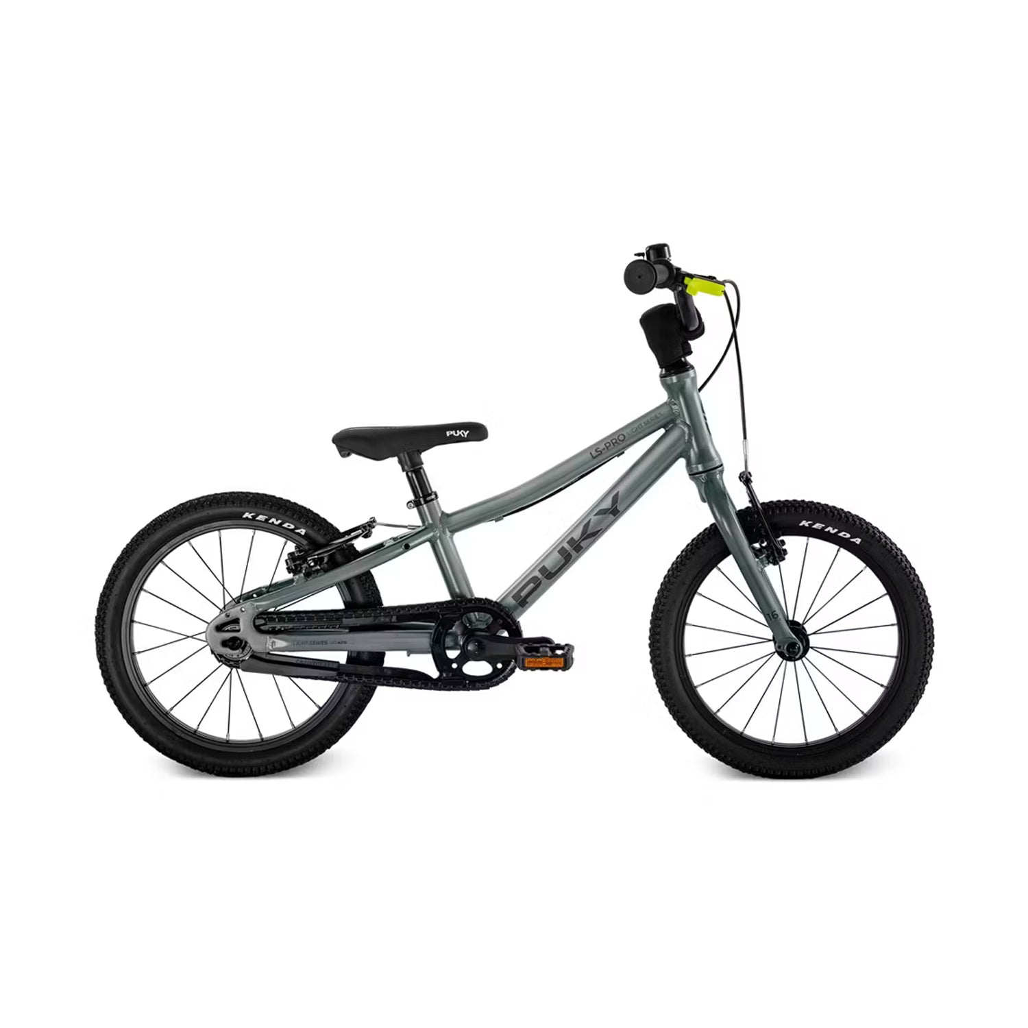 The ergonomically designed frame serves as the basic frame of the PUKY LS-PRO 16, which is just one of many lightweight aluminium components. Thus the aluminium fork, aluminium crank and aluminium seat post ensure further weight savings. The chain box was also replaced by the innovative HEBIE Chainlooper. The LS-PRO 16 weighs only 6.3 kg. However, PUKY has not saved on safety. Safety handlebar grips, reflector set and non-slip pedals are of course included. The PUKY LS-PRO 16 can also boast the only V-brake for children that conforms to standards to date.