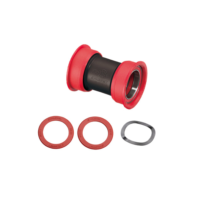 Pressfit 30 bottom bracket to suit carbon road BB30 cranksets. Compatible with BB386 Evo, PF30, and BBRight frame standards. Ceramic bearings for minimum friction and maximum durability. Designed with clearance to allow internal routing of wiring for Di2 or other electronic shifting system