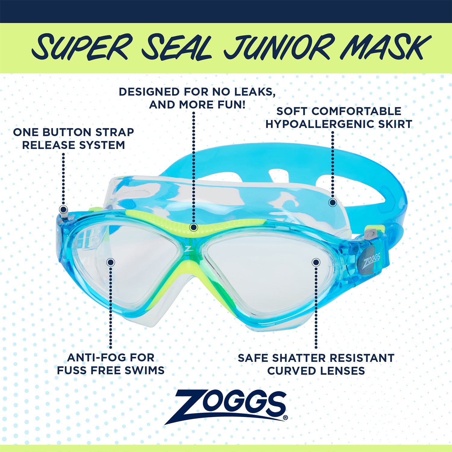 Make every swim session more comfortable with the Zoggs Super Seal Junior Mask, designed specifically for young swimmers who need a secure, leak-resistant fit without constant adjustments. Combining soft comfort with wide vision clarity, this mask helps kids build confidence in the water—whether at lessons, training, or family pool days.
